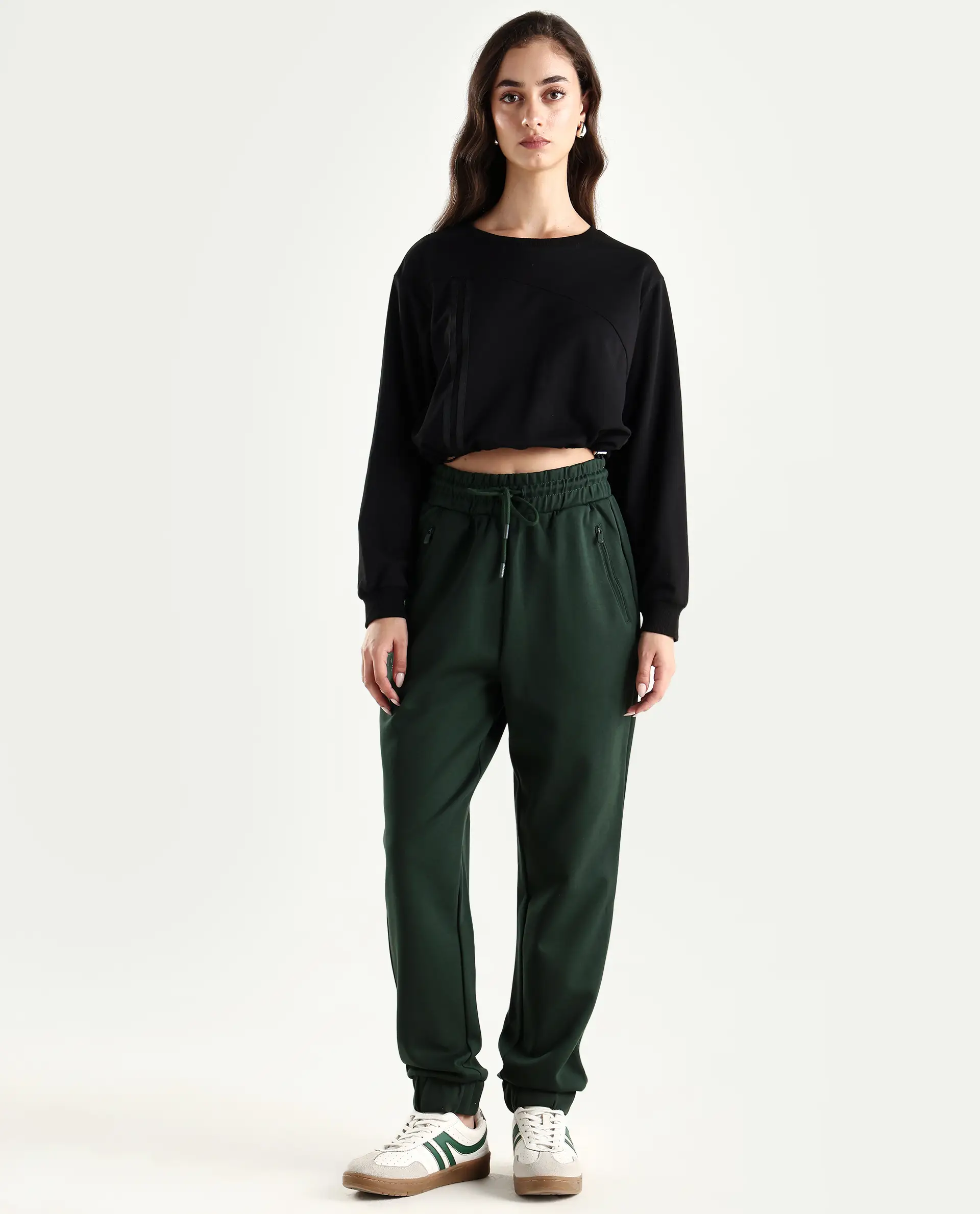 Rareism Women's Heavy Weight Interlock 340 Gsm Cotton Blend Plain Ankle Length Relaxed Fit Track Pant—