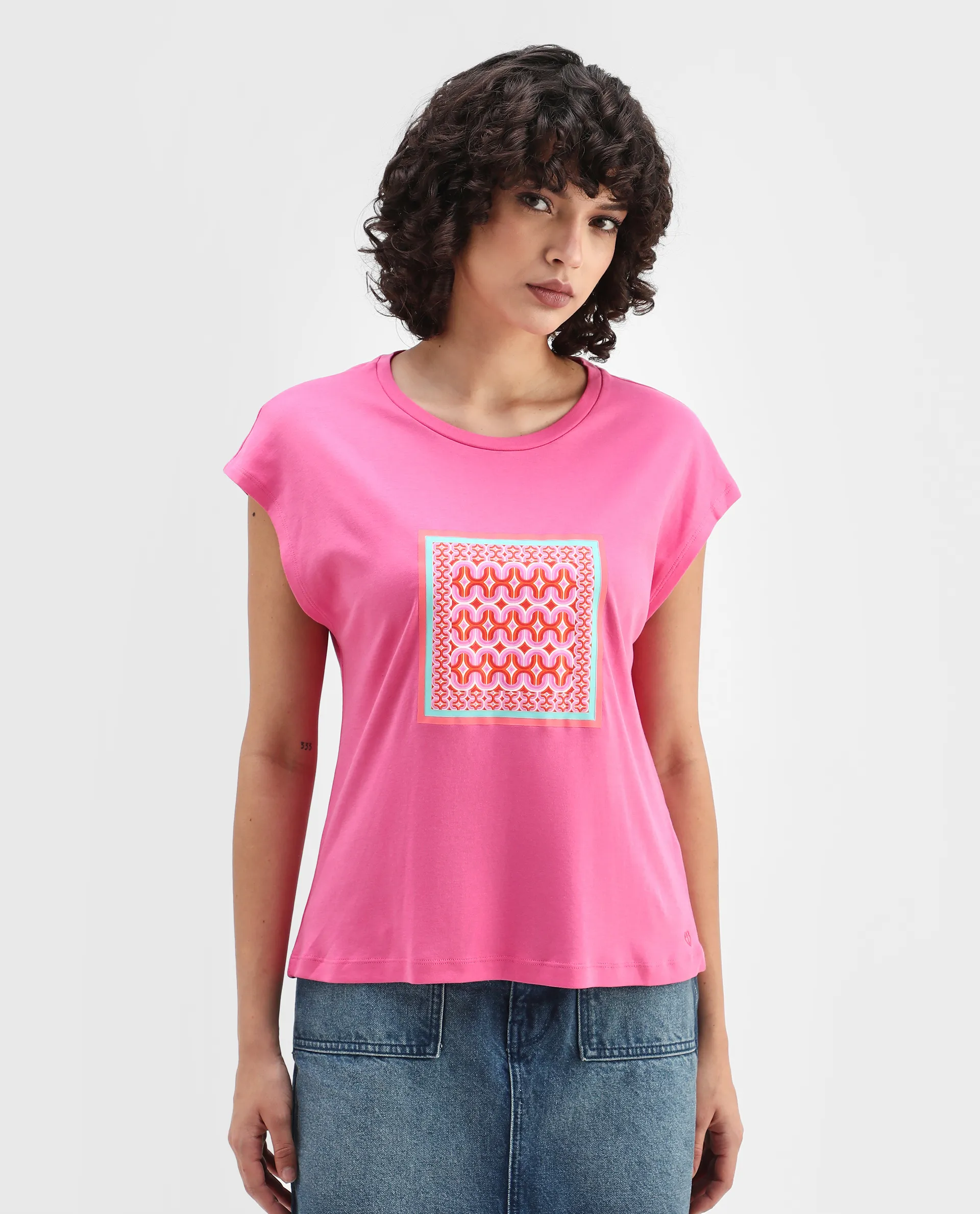This womens t-shirt from RAREISM carries a contemporary and minimal charm. Its neat styling keeps the outfit looking fresh and composed. A reliable pick for someone who prefers a soft, modern aesthetic.
