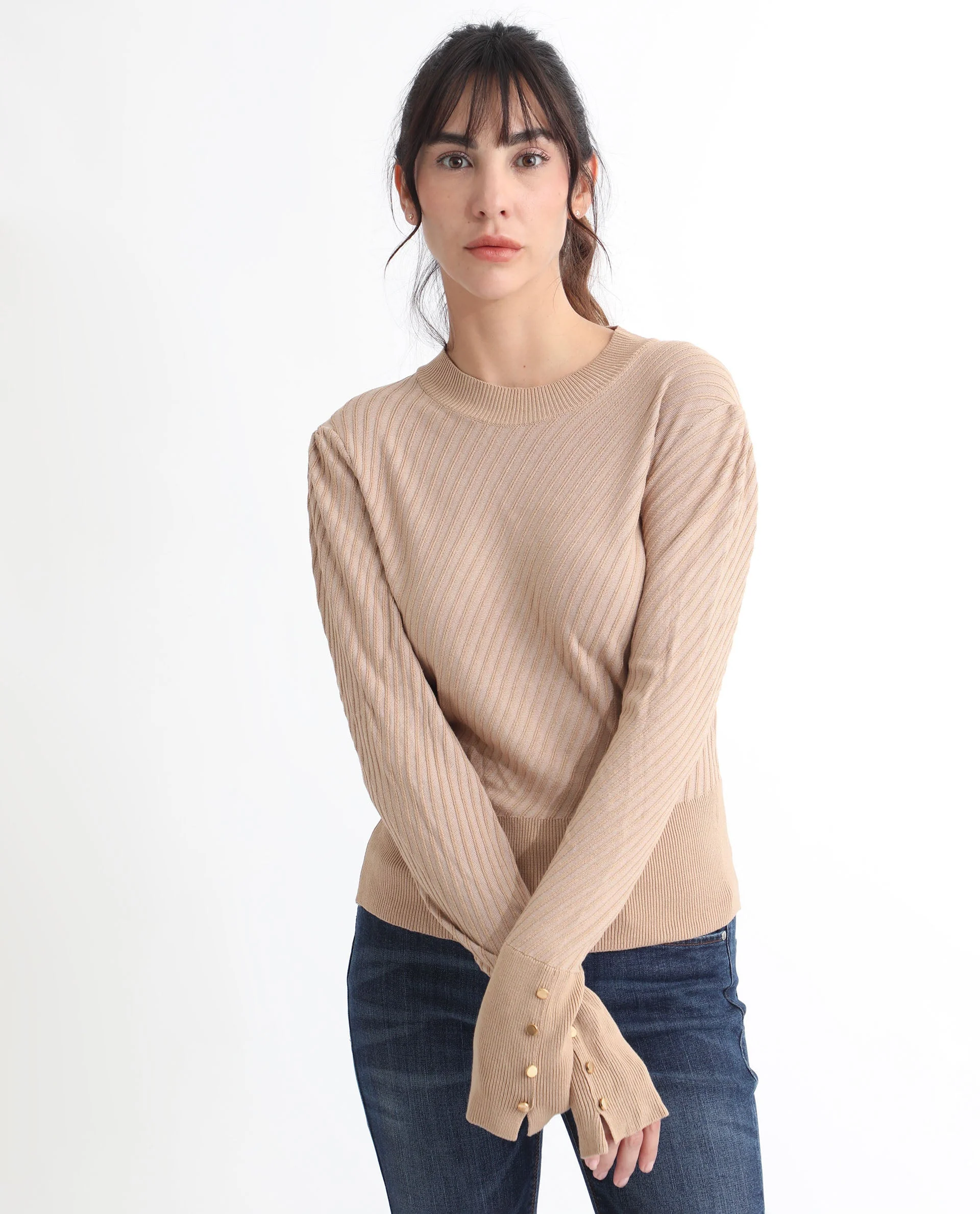 This womens sweater embraces a soft, everyday look with its subtle appeal. The design stays uncomplicated and polished, creating a smooth overall appearance. Perfect for maintaining a simple yet elevated style.